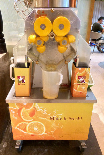 很特別的是直接放一台柳橙榨汁機在這兒