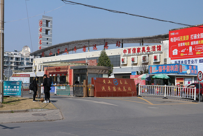 12:15離開客棧,想著走到車站搭13:00的車前往宏村,時間綽綽有餘,卻忘了,昨天下車的地點與車站還隔了段距離,走到一半才發現這件事,立馬卯起來趕路,把尚未從黃山一戰後痊癒的腿馬力再催到極致,頭上頂著大太陽,行囊裡還裝著一堆純牛奶跟剛剛買的水果,簡直給自己作死。