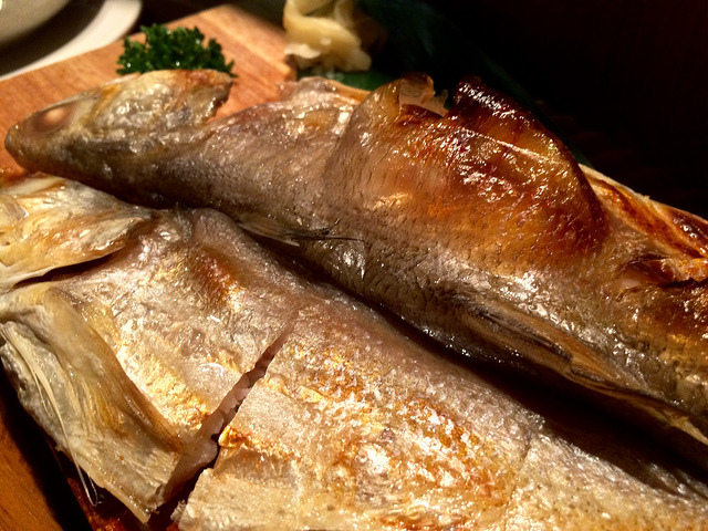 店家幫我們做了兩片辣鮭魚,繼野草居食屋後又見這種做法