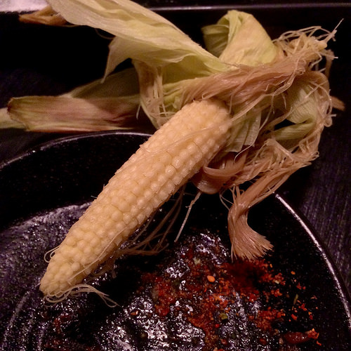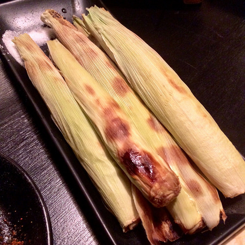 左至右為櫛瓜、糯米椒、番茄、白果、杏鮑菇、以及▽玉米