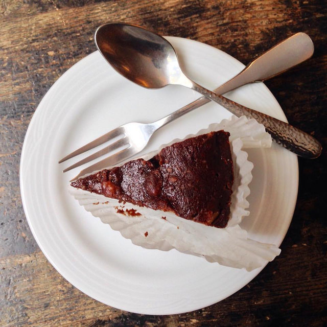 簡單來說,感覺像是在吃一個濕濕軟軟的…巧克力麵團?(加核桃)