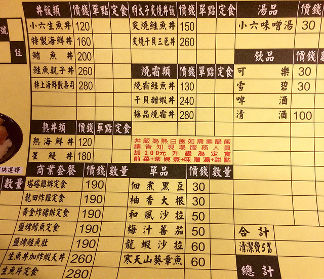 最貴的生魚片丼飯也不過NT$280!!!(2016.06補充:店家有部分價格調漲)