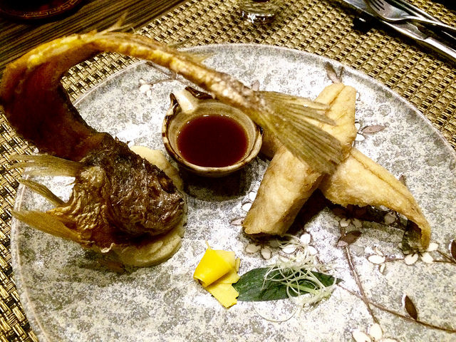 噱頭十足的擺盤,其實可食用部分就兩塊。一來我不愛炸過的口感,二來覺得肉質有些乾。