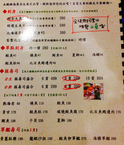 另外請店家幫我做的兩種刺身,所以沒記下價格