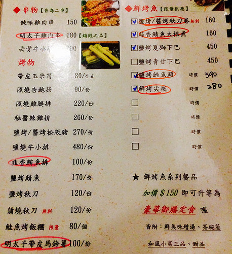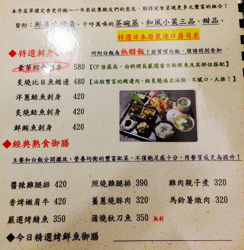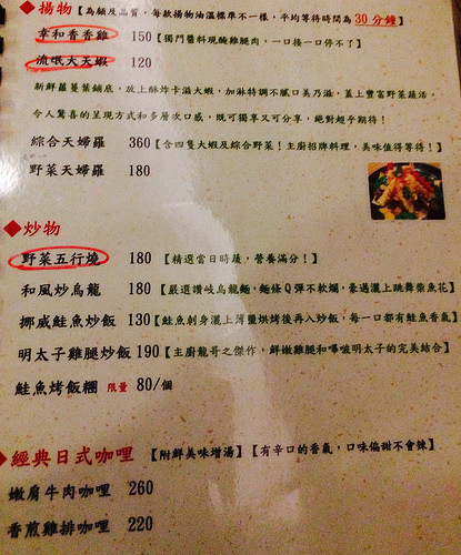 綜合的日式菜單,炸煮烤生,想得到的大概都有