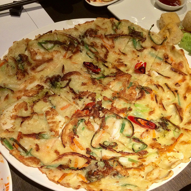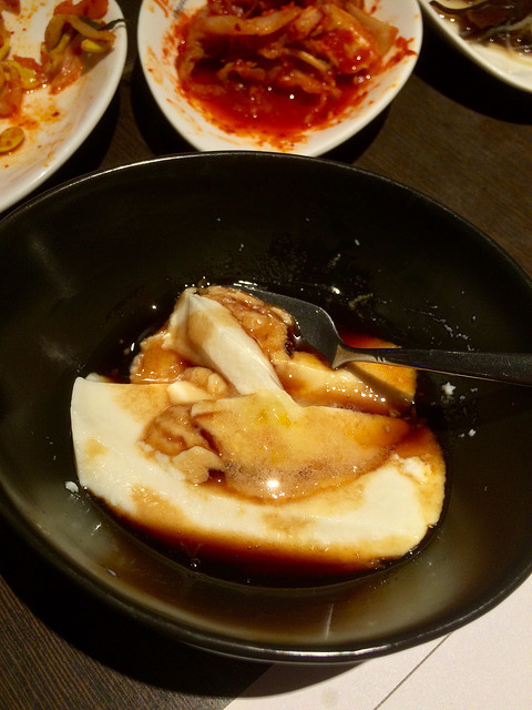 韓國料理靈魂之一當然是無限供應的小菜,光吃這個都飽了。小菜共有六項:泡菜、豆芽菜、海帶、木耳、豆腐。一開始直接各給一盤,如果有不吃的可以請他們收走,一起節省愛地球:)