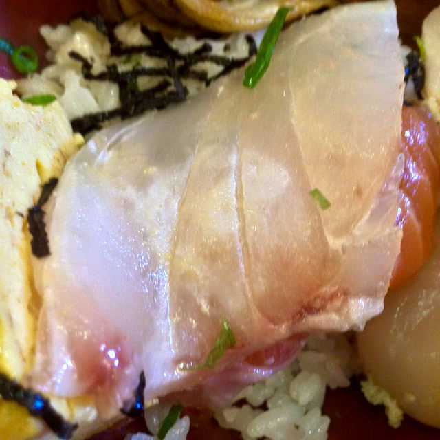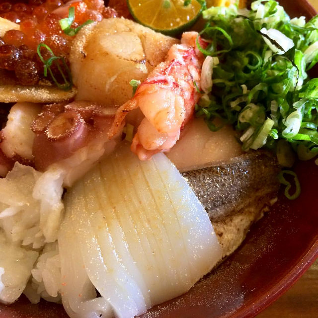 進階版的綜合海鮮丼,再多了蝦子、干貝、星鰻、吻仔魚、鮪魚泥