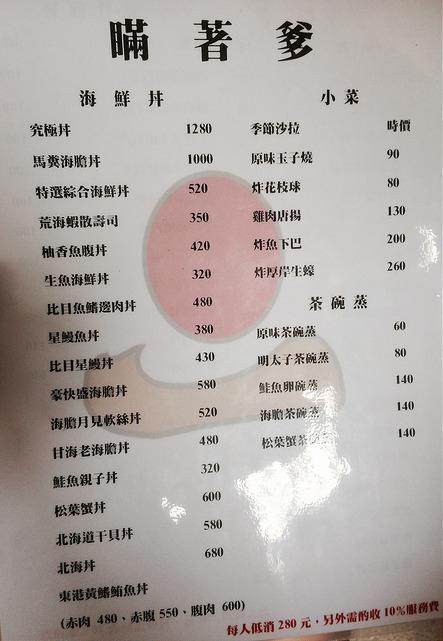 低消為NT$280+10%/人
