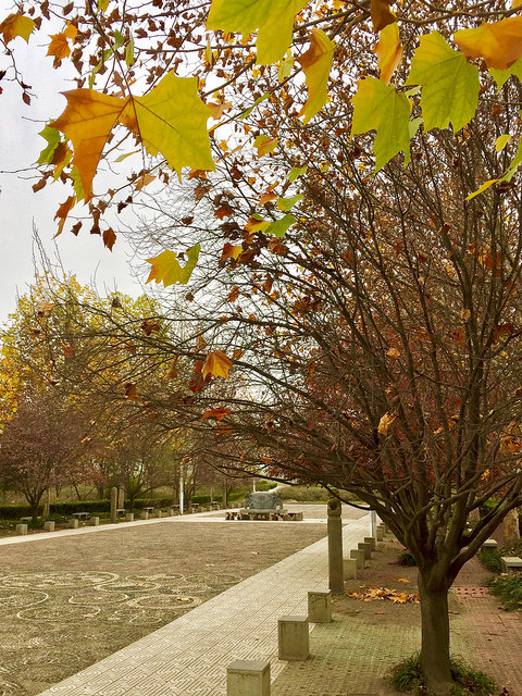 因為是平日,公園人潮不很多,但仍時不時就看得到各樣人物:出來遛狗的大叔、忙著交談的上班族、聊得開心的年輕情侶、正趕往另一處的過客,以及牽著手、慢慢走在小道上的老夫妻。