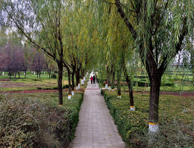 渭河公園邊上有延伸整個公園的人行道,可以從頭走到尾。園區內還有數不清彎彎曲曲的寬路窄道,樹多又密,簡直像座迷宮。