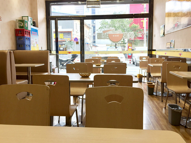 躲在小巷子裡,跟著地圖一下就找到了,黃色的招牌很醒目,上面寫著一行有趣的標語:「第一次不吃怪你,第二次不吃怪我」。這時11:30,裡頭幾乎沒半個人,我站在門口遲疑了一會兒,最後還是決定推門進去。