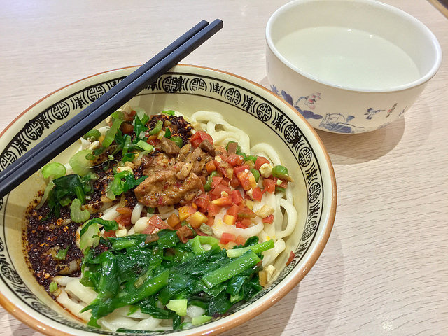 跟眉縣吃到的相比,這兒扯面有肉末、菠菜、蔬菜丁,看上去更豐富些。儘管市區裡貴了一點(其實也才差rmb$1),還是超便宜啊。