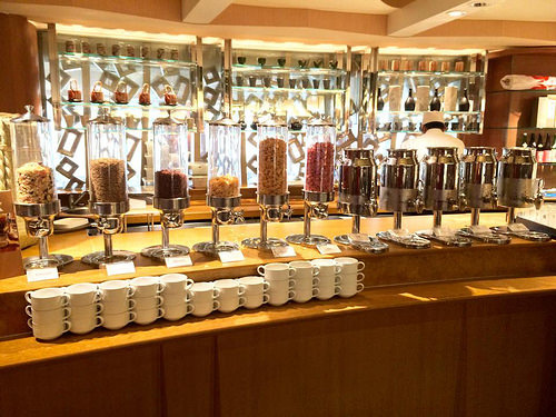 入桌服務生會先詢問是否需要咖啡或茶,當然自助區也有機器可自行操作。