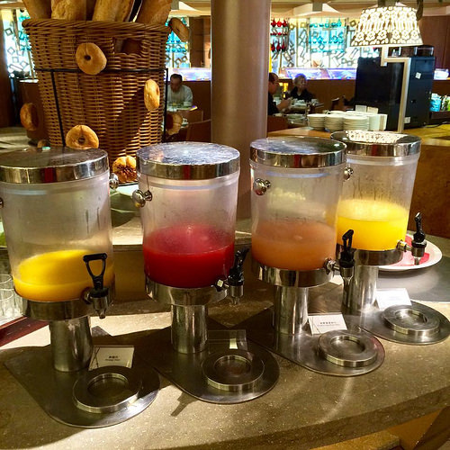 有現打新鮮健康蔬果汁。口味不一定,推車會不停的在餐廳內走動詢問。很好喝呢,不會有太過強烈的蔬菜味。