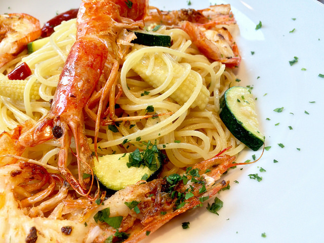 蒜辣鮮蝦櫛瓜義大利麵(NT$380+10%)