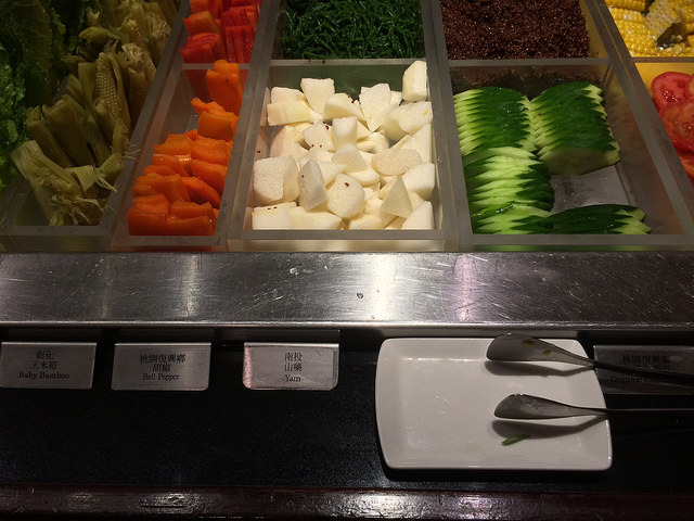 而且還標明了產地:彰化玉米筍、桃園復興鄉的甜椒和小黃瓜、南投山藥