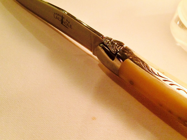 端上主餐前,會讓客人選擇牛排刀,法國的Forge de Laguiole,許多餐廳的愛用品牌